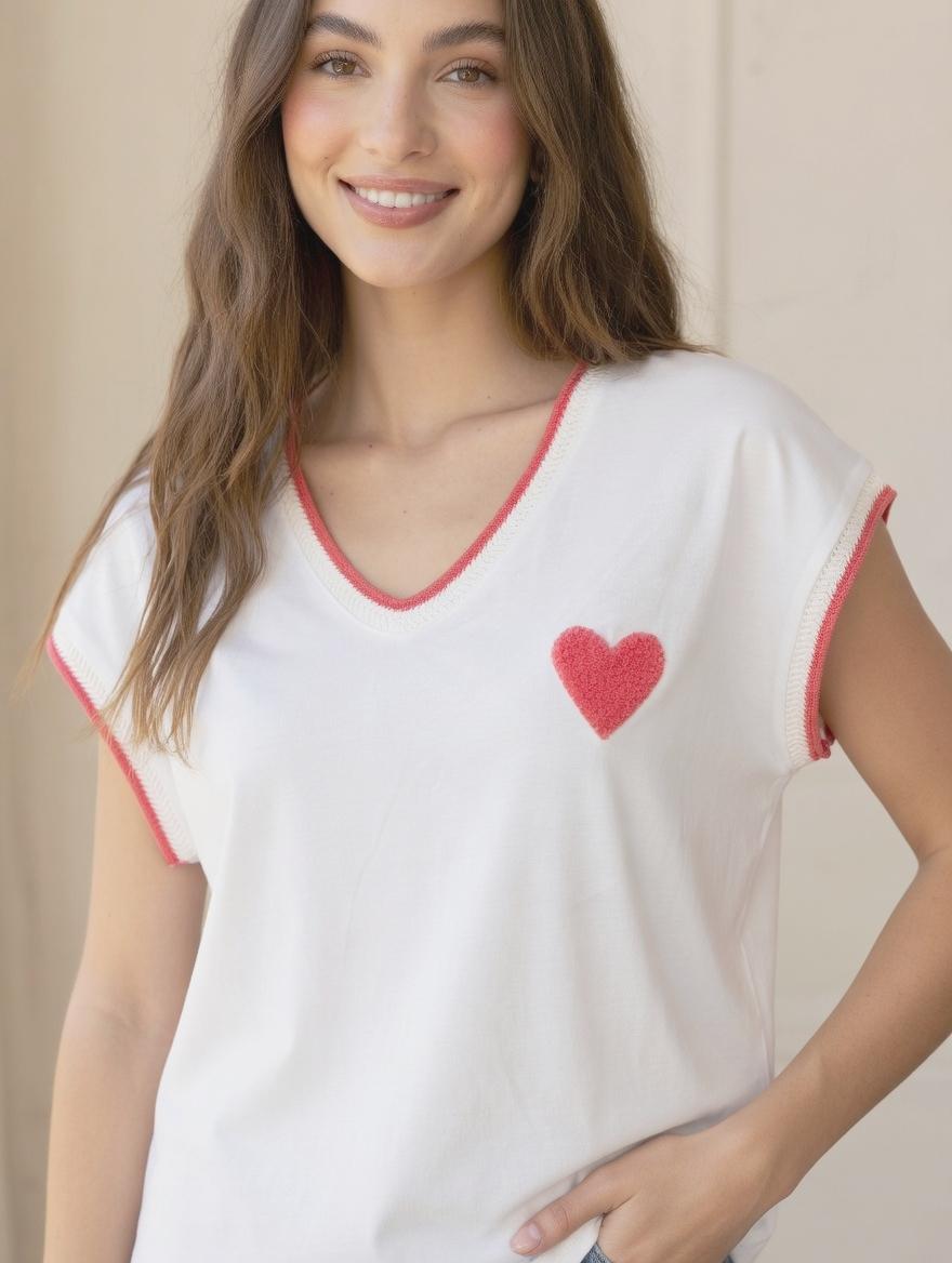 Camiseta corazon bordado rosa